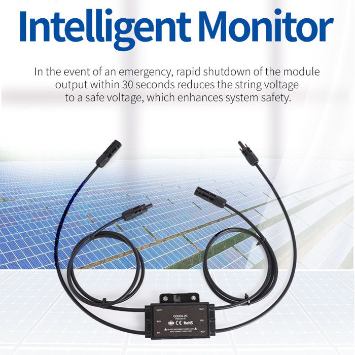 تم تصميم نموذج GD004-20/30 لإيقاف تشغيل محولات الطاقة الشمسية الطارئة في أنظمة الطاقة الشمسية السكنية والتجارية والخدمات العامة.تصميمه المدمج (120 × 77 × 17 مم) وحماية IP68 تجعله مناسبًا لبيئات التثبيت المختلفة.